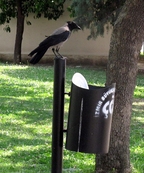Having grown tired of being referred to as dirty and messy, one hooded crow in Izmir, Turkey took matters into its own beak to help make its park a little cleaner.